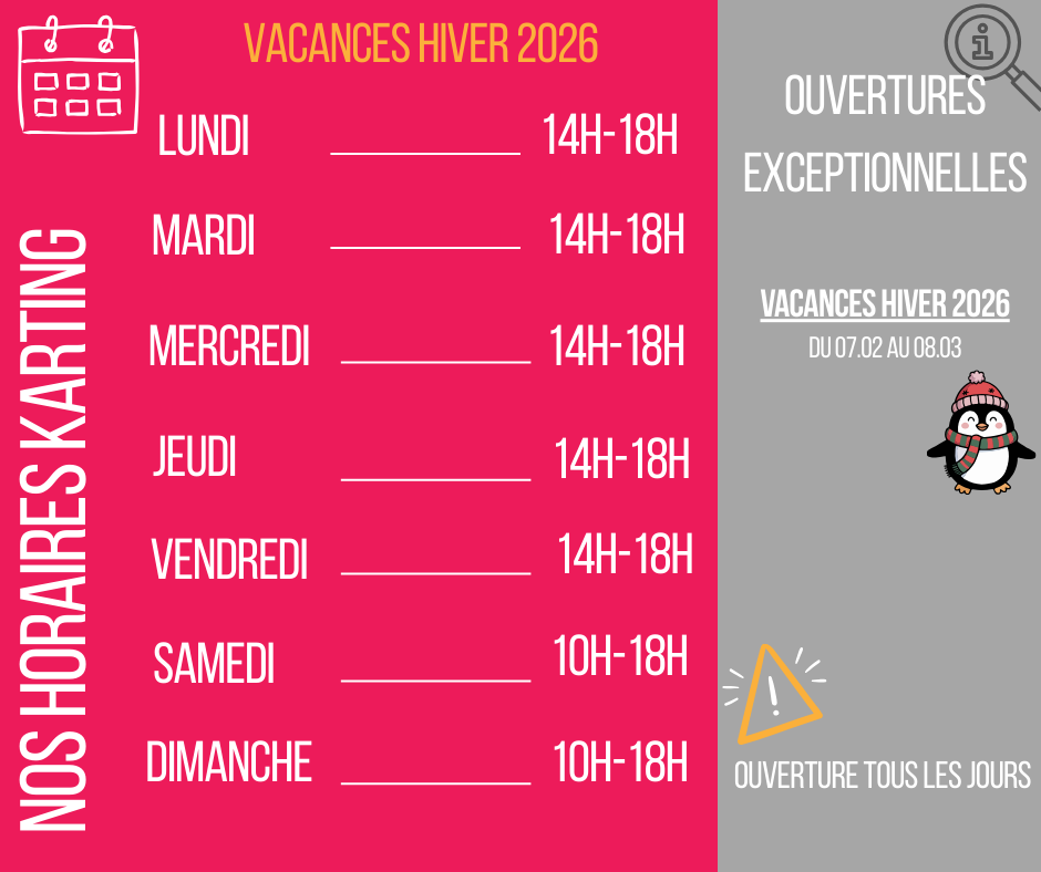 - Course Endurance, Challenge individuel, Karting illimité, Sprint Cup,...: compétitions loisirs accessibles à tous, un moment convivial et sportif !